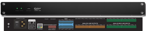 模擬輸入通道:16 模擬輸出通道:8 處理器:ADI SHARC 21489@450 MHz SIMD; DSP處理能力:400 MIPS,1.6 GFLOPS; 采樣率:48 kHz,± 100 ppm; 動態(tài)范圍(A/D/A):>107 dB,A加權(quán); THD + 噪音:<-90 dB (22.4 kHz BW,不加權(quán));1 kHz @+18 dBu帶0 dB增益; 內(nèi)置一進一出的USB聲卡,支持音樂播放、錄制和軟視頻會議(如:ZOOM,騰訊會議,釘釘會議等); 總線式AEC,尾長時間:512ms,收斂率:60dB/S, 回聲消除幅度:60dB; 獨立通道的AFC(反饋抑制),采用陷波式算法,傳聲增益提升幅度:10dB; 噪聲抑制(ANS),信噪比提升18dB 8段英式參量均衡,提供5種濾波器選擇:Parametric,Lowshelf,Highshelf,Lowpass,Highpass; 提供終端用戶訂制操作界面,最大支持30臺設(shè)備同一個界面管理; 具有中央控制功能,可對系統(tǒng)中的電源、信號切換、環(huán)境控制、音頻等整體控制,實現(xiàn)一鍵開啟系統(tǒng)所需要的功能。