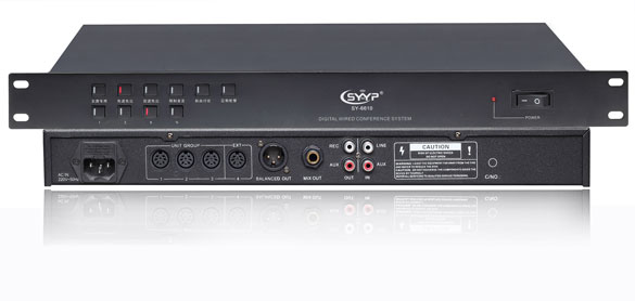 SY-6610主控機(jī)的基本特性 ◆ 具有三組8P-DIN插座用于系統(tǒng)多路連接,每路最多可以控制16套列席單元,常規(guī)產(chǎn)品可以聯(lián)接48套會(huì)議系統(tǒng)列席單元,附加 擴(kuò)容設(shè)備可增至聯(lián)接500套以上的列席單元。 ◆ 功率:50W ◆ 具有平衡線路輸出接口;左右線路輸出接口;及不平衡輸出接口以適應(yīng)各種設(shè)備連接方式。 ◆ 本機(jī)本身不帶功放及喇叭,需與功放及音響組合使用。 ◆ 本機(jī)采用220V~交流供電。 ◆ 本機(jī)外觀輕巧,可平放置于臺(tái)面或安裝于19英寸標(biāo)準(zhǔn)機(jī)柜中。