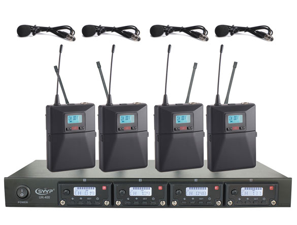一拖四無線頭戴、領夾,直線接收距離60米,可用于小型戶外演出、學校,200個頻點可調