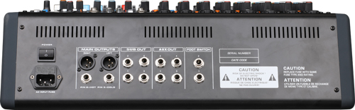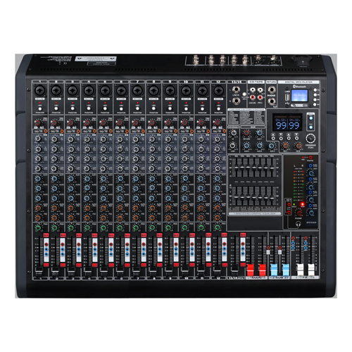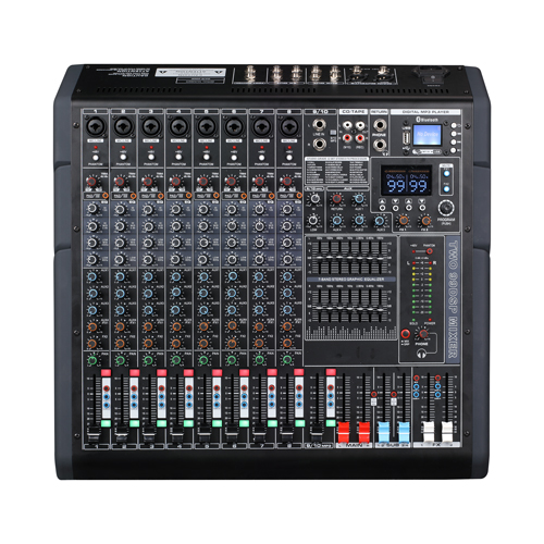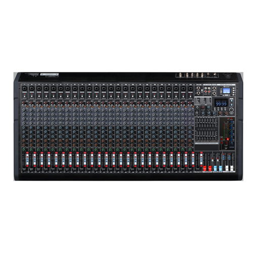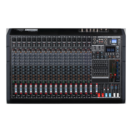 2.分路音調帶中音掃頻EQ可調 3.左右兩路主聲輸出,兩路輔助輸出 4.雙99DSP效果器 5.四路編組輸出 6.帶48V幻象電源,分路帶48V獨立開關 7.帶4AUX輔助輸出 7.總輸出雙7段均衡可調 8.帶藍牙和錄音功能的MP3播放器 9.每分路帶靜音功能 10.每路監聽帶LED燈顯示
