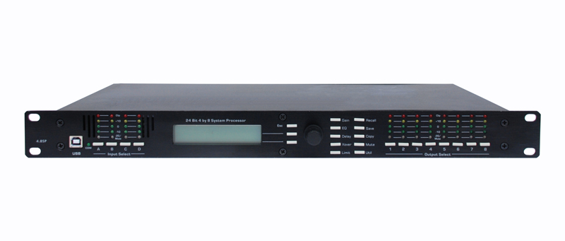 4個輸入/ 8輸出的數(shù)字信號處理器, 通過前面板界面上的具體功能按鈕,調(diào)整所有控制參數(shù),消除隱藏子菜單。