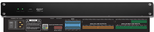 模擬輸入通道:12 模擬輸出通道:8 處理器:ADI SHARC 21489@450 MHz SIMD; DSP處理能力:400 MIPS,1.6 GFLOPS; 采樣率:48 kHz,± 100 ppm; 動態(tài)范圍(A/D/A):>107 dB,A加權; THD + 噪音:<-90 dB (22.4 kHz BW,不加權);1 kHz @+18 dBu帶0 dB增益; 內置一進一出的USB聲卡,支持音樂播放、錄制和軟視頻會議(如:ZOOM,騰訊會議,釘釘會議等); 總線式AEC,尾長時間:512ms,收斂率:60dB/S, 回聲消除幅度:60dB; 獨立通道的AFC(反饋抑制),采用陷波式算法,傳聲增益提升幅度:10dB; 噪聲抑制(ANS),信噪比提升18dB 8段英式參量均衡,提供5種濾波器選擇:Parametric,Lowshelf,Highshelf,Lowpass,Highpass; 提供終端用戶訂制操作界面,最大支持30臺設備同一個界面管理; 具有中央控制功能,可對系統(tǒng)中的電源、信號切換、環(huán)境控制、音頻等整體控制,實現(xiàn)一鍵開啟系統(tǒng)所需要的功能。